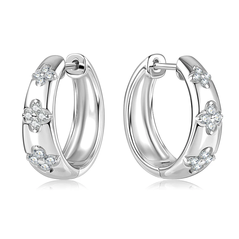 GRA Certified Moissanite Trio Flower Hoop Earrings 925 14K Gold Plated