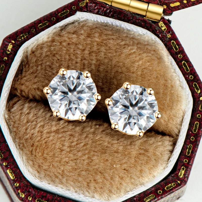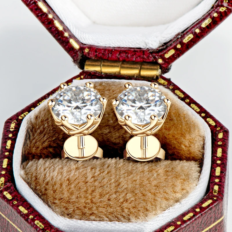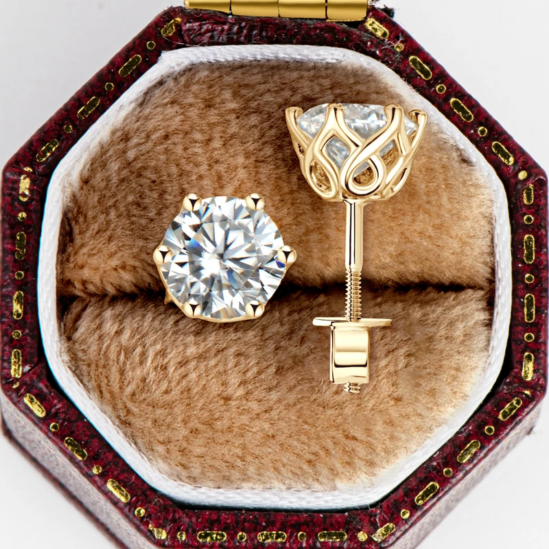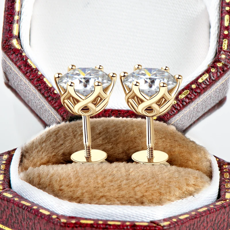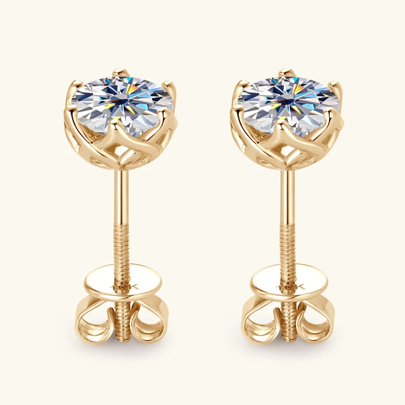 Classic Screw Back Passed diamond test GRA certification 10K Solid Gold 1.0CT Round Moissanite stud Earrings